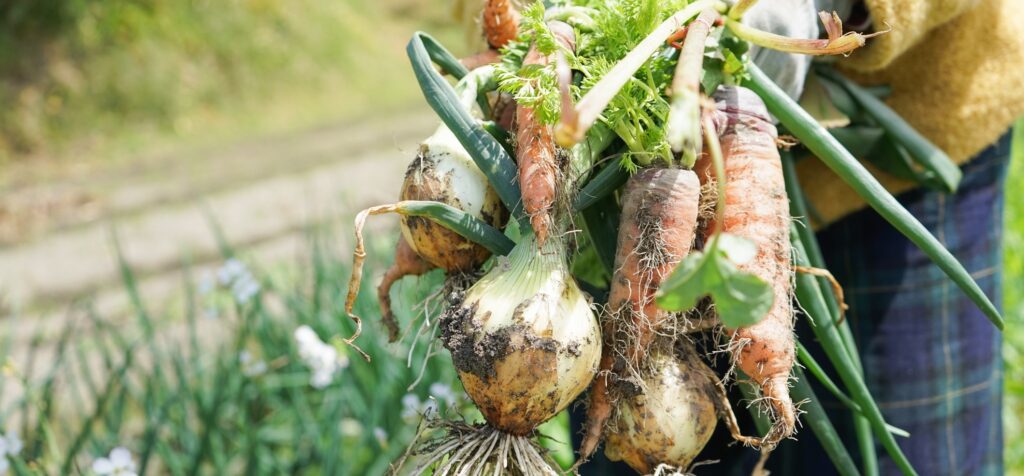 パンチェス農園の主力はぶどうです。コメをやれるほどの耕地面積はありませんが、そのぶん手間と時間をかけて丹精込めた最高のぶどうを提供しています。その他の果樹はぶどうと出荷時期がズレる果樹(ブルーベリー、桃、キウイ、洋梨、アボガドなど)を栽培しています。野菜については、小さな規模ですが、里芋・白ネギ・ニンニク・トマトも作っています。