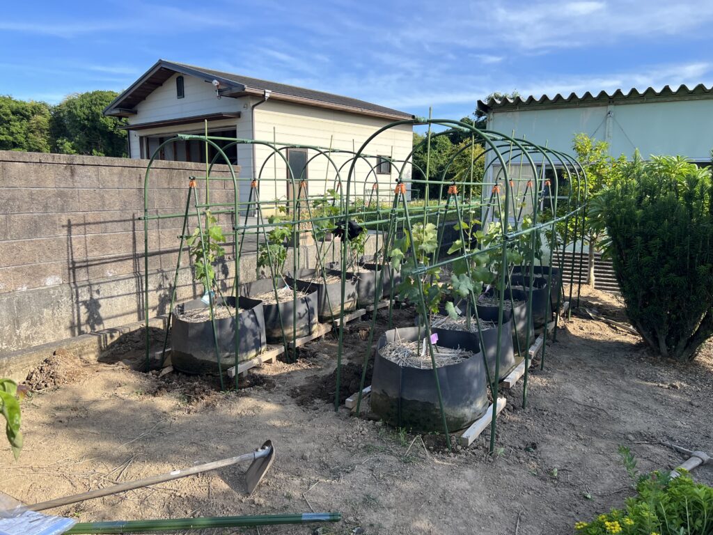 ビニールハウスのダンドリが間に合わなくて、取り敢えず、定植だけ先行させました。