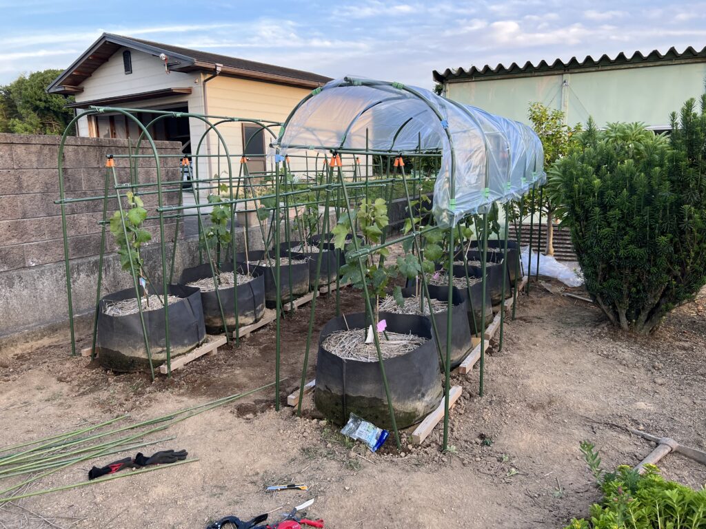 とりあえずビニールハウスができるまでの間は、管理のし易さを優先して、自宅前でまとめて面倒を見ます。