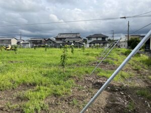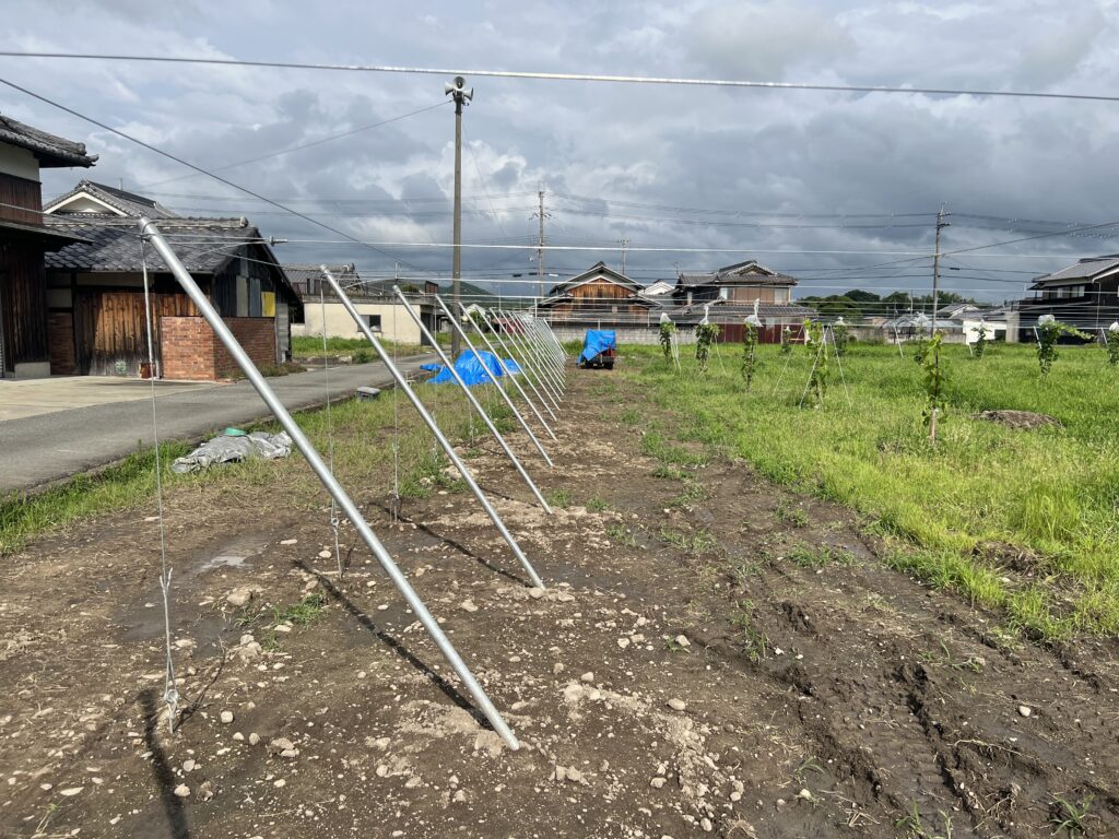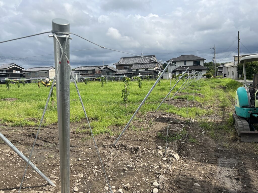 第2圃場は地植え栽培をしています。先に苗を定植してしまって順番が前後するのですが、後から果樹棚を設置します。